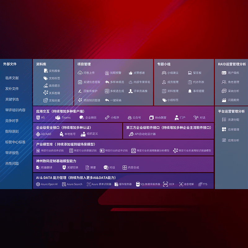 医疗器械产品上市前,,,要熟悉严格与繁复评审标准,,整理分析监管机构指导文件中的海量信息。。。。企业急需一个智能化解决方案,,,,提升知识管理效率,,,提高评审通过率,,,,以提升其市场竞争力。。。。
