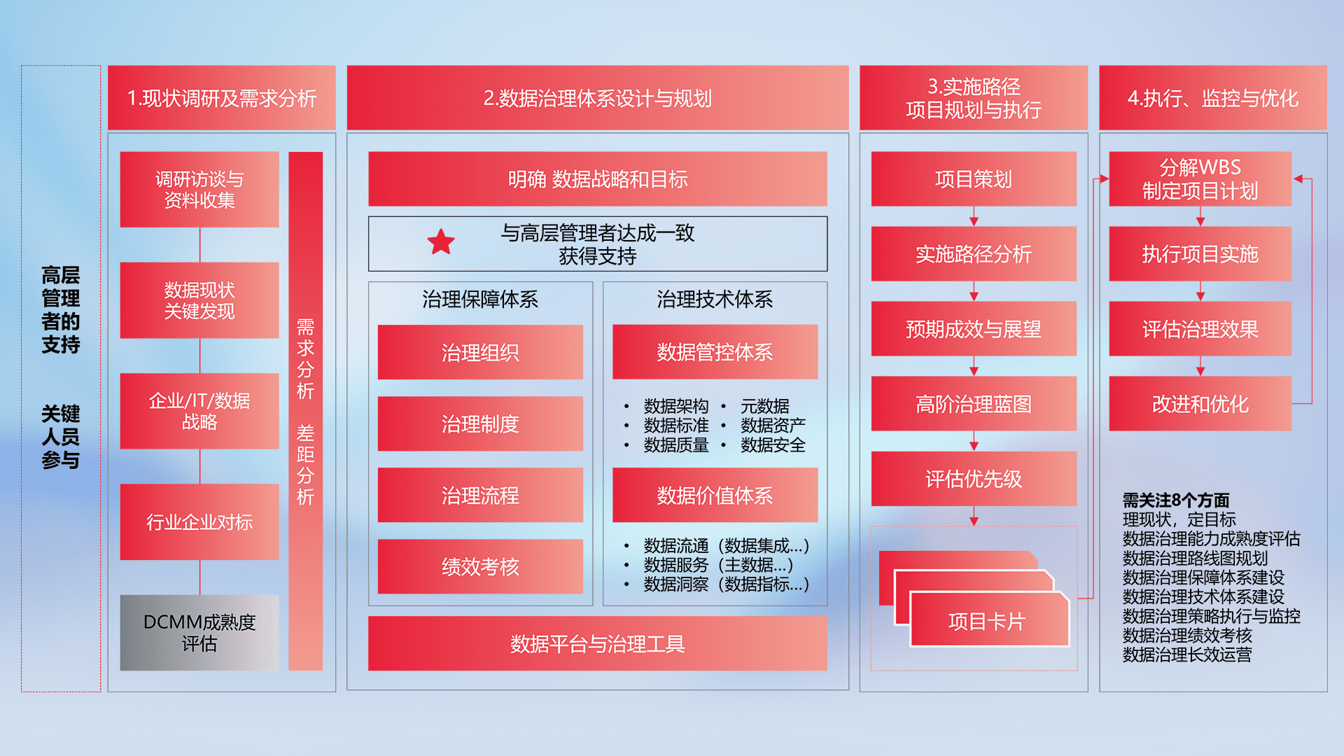 制定并执行统一的数据标准,,规范数据定义和格式,,,,消除冗余和不一致性,,,实现跨部门和跨系统的数据一致性,,,为企业提供标准化的数据基础。。。。